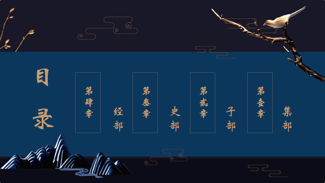 这是一套蓝色山川花鸟背景国潮中国风“道礼和”古典文化宣传PPT模板,共25页;