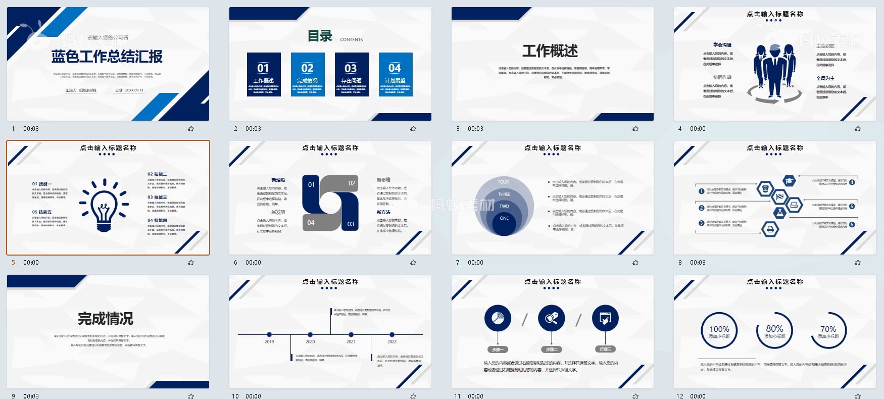 简约蓝色条纹工作总结汇报PPT模板第6张图-蚂蚁素材网