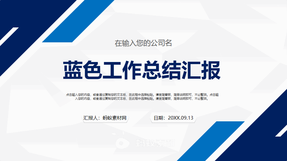 简约蓝色条纹工作总结汇报PPT模板第1张图-蚂蚁素材网