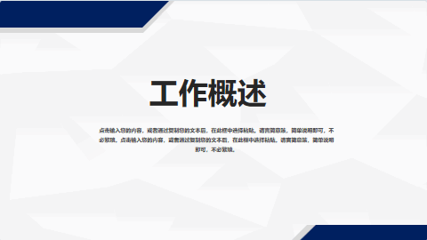 当前作品类型是PPT模板,以深蓝条纹装饰稳重大气的PPT模板,使用场景是工作汇报PPT模板,也可用于工作汇报PPT、工作PPT、汇报PPT、计划PPT、工作总结PPT模板、总结PPT,作品编号为 0zuVxC,作品格式为pptx / ppt,该PPT模板文件大小是443 KB。源文件下载后,文字、图片等主体内容皆可修改,更多真正免费的工作汇报PPT模板下载,就来蚂蚁素材。