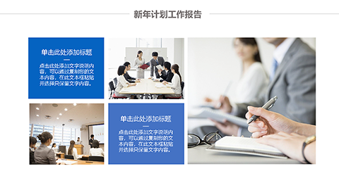 精美蓝色工作总结新年计划PPT模板,这是一个以蓝色为主色调设计的一个商务PPT模板,共计40页。