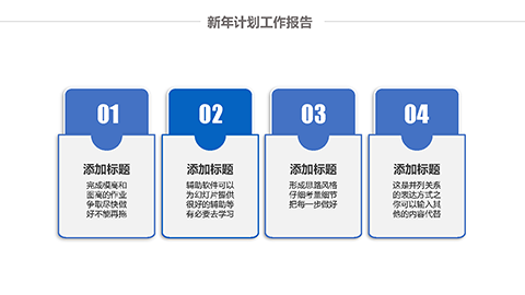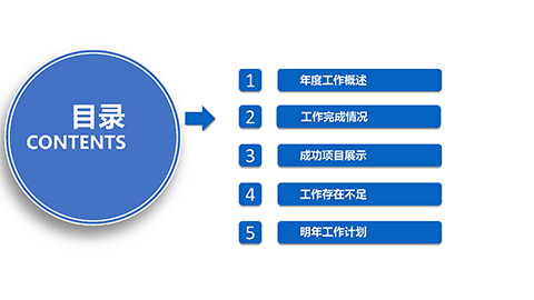 该PPT模板大气简洁,蓝色为主色调穿插灰色图标点缀,是一款通用的PPT模板,可以作为年终总结PPT、年度计划PPT、工作计划PPT等。