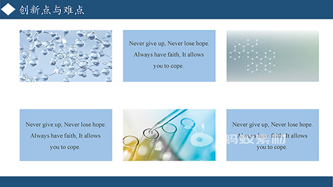 蓝色毕业论文学术风开题报告PPT模板,学术风开题报告PPT模板这是一个大气稳重简洁的开题报告PPT模板,以学术风格为模板主题,以模板封面的白蓝色为背景,该模板采用大量幻灯片要素进行说明:研究内容、技术路线、计划安排、创新点和难点,是比较耐看的开题报告PPT模板。