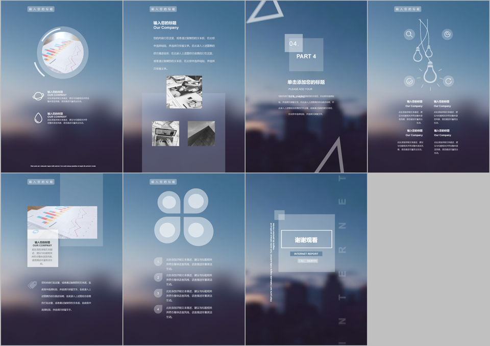 蓝色竖屏iOS风格商务演示PPT模板,这是一套蓝色竖屏iOS风格商务演示PPT模板,共24页;PPT模板封面,使用了蓝色朦胧感透明方块背景图片。中间填写商务汇报PPT标题。界面为竖屏IOS风格。