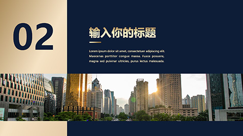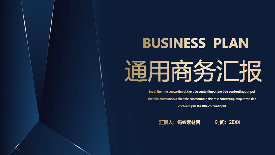 简约蓝金高端商务汇报PPT模板第1张图-蚂蚁素材网