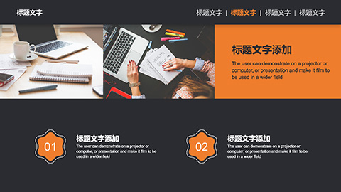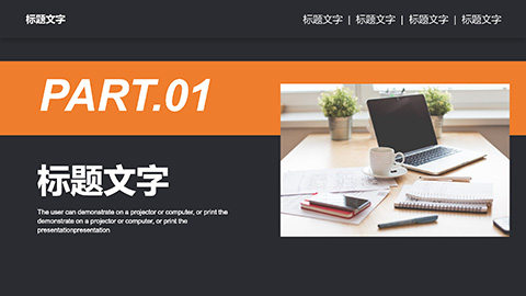 办公桌面背景黑橙配色商务汇报毕业答辩PPT模板