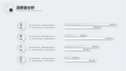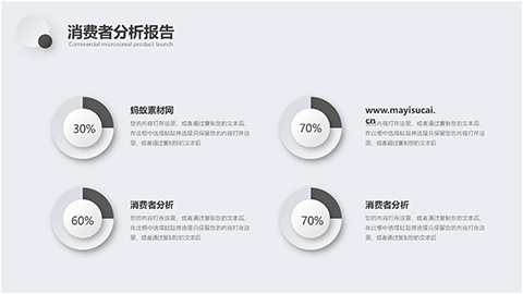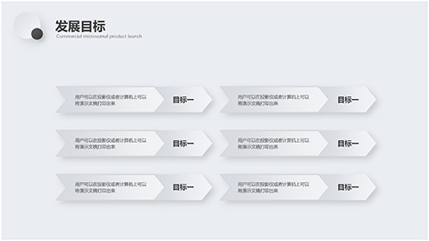 PowerPoint模板内容页,由27张灰色动态幻灯片图表,搭配PPT文字排版组成。另外使用了商务人士插图、科技产品展示插图、命中靶心的箭插图等装饰,突出了发布会主题。