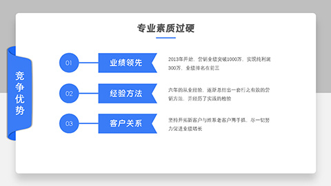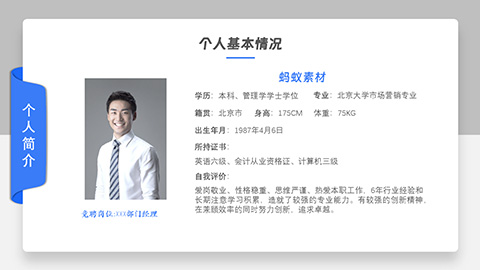 岗位竞聘个人求职简历自我介绍PPT模板, 当前作品类型是PPT模板,使用场景是汇报|报告PPT,也可用于岗位竞聘PPT、岗位PPT、竞聘PPT、个人求职PPT、求职PPT、求职简历PPT、自我介绍PPT,作品编号为ZtQCO,作品格式为pptx / ppt,该PPT模板文件大小是7.60 MB。源文件下载后,文字、图片等主体内容皆可修改,更多真正免费的竞聘PPT模板下载,就来蚂蚁素材网。