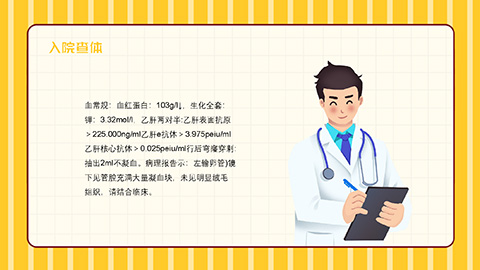 PowerPoint模板内容页,由10张黄色动态幻灯片图表,搭配PPT文字排版。另外使用了卡通医生插图、卡通护士插图等装饰,突出了医学主题。