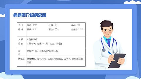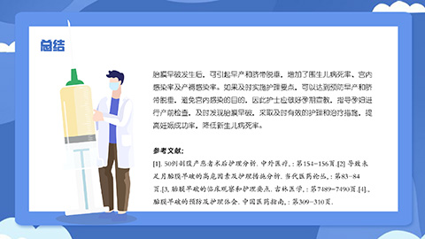 蓝色卡通护士背景胎膜早破病人护理知识讲座PPT模板