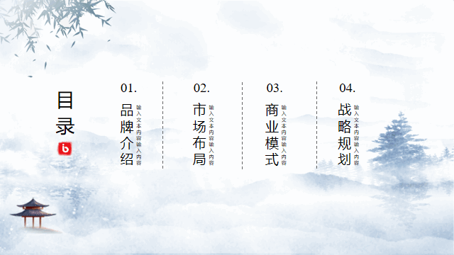 这是一套淡雅红日迎客松背景雅韵中国风品牌宣传PPT模板,共25页;